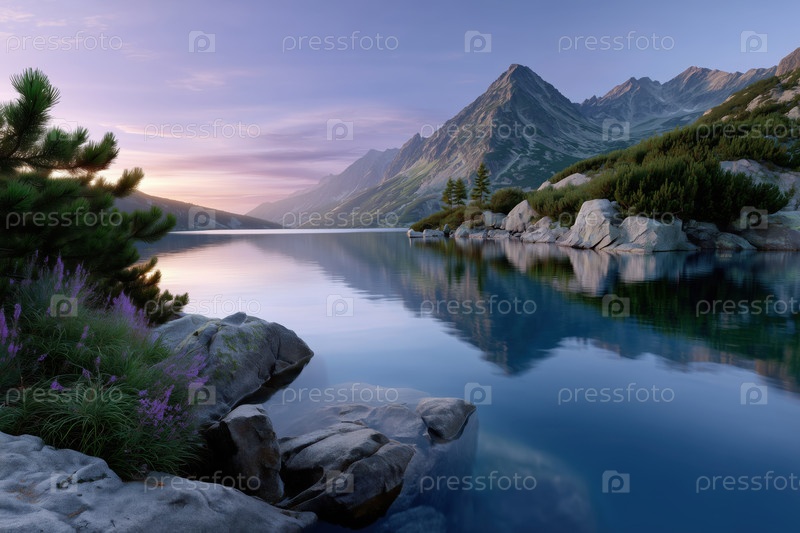 Горное озеро сегодня вечером.Солнце восходит в горах