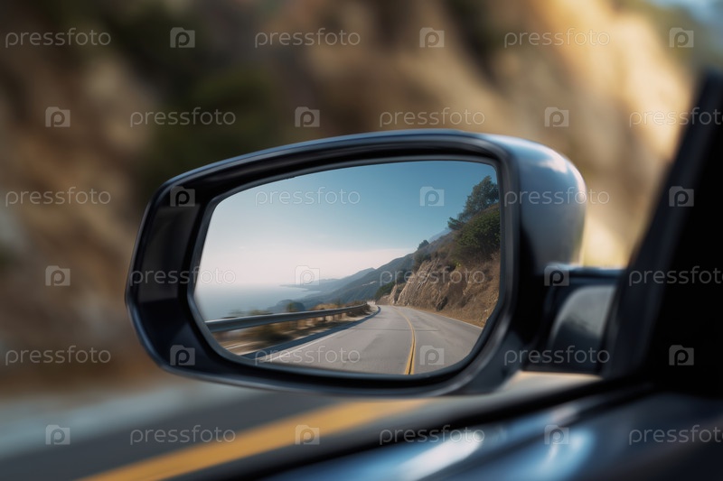 Вид со стороны автомобиля с прибрежной дорогой на заднем плане
