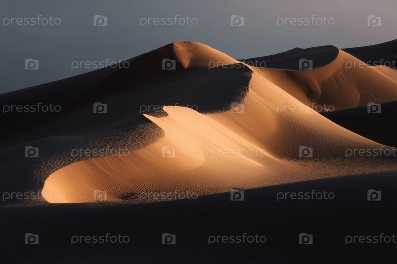 Песчаные дюны рано утром, восход солнца в пустыне