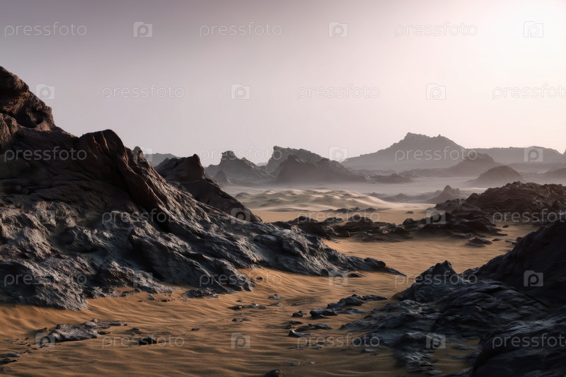 Реалистичный пейзаж Марса.Скалы и песок