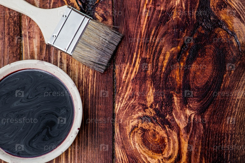 Защита и покрытие деревянных досок. текстура дерева окрашена. закрывание пятна и кисть