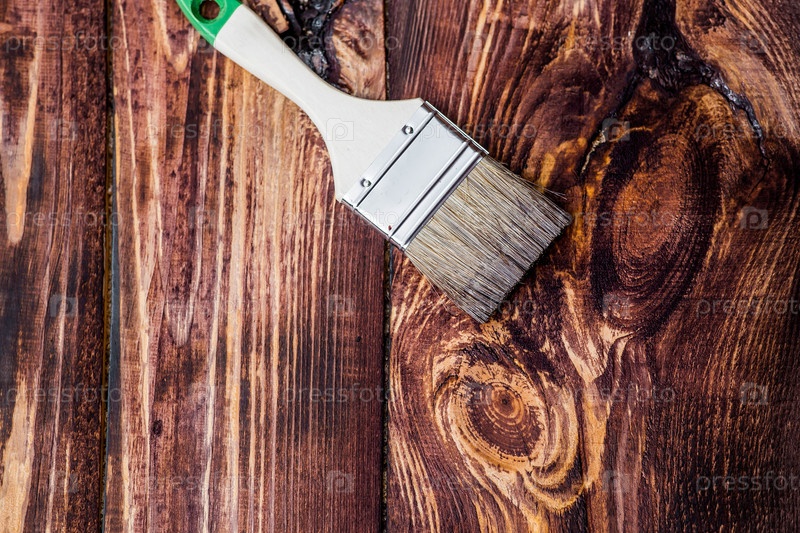 Защита и покрытие деревянных досок. текстура дерева окрашена. закрывание пятна и кисть