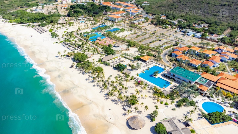 Вид с воздуха на тропический пляж и курортный ландшафт