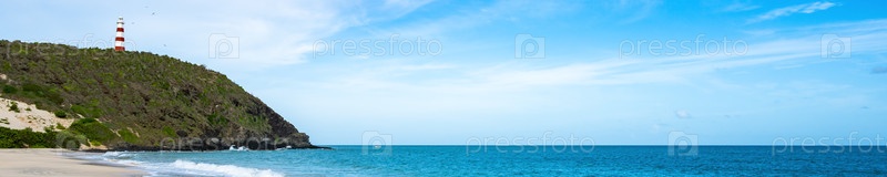 Пляж с маяком на холме удален из дрона