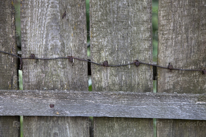 Фон: Старый забор с ржавыми гвоздями и проволокой