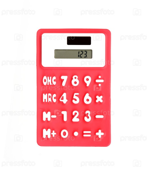 Красный калькулятор для детей с белыми цифрами, выделенными на белом фоне