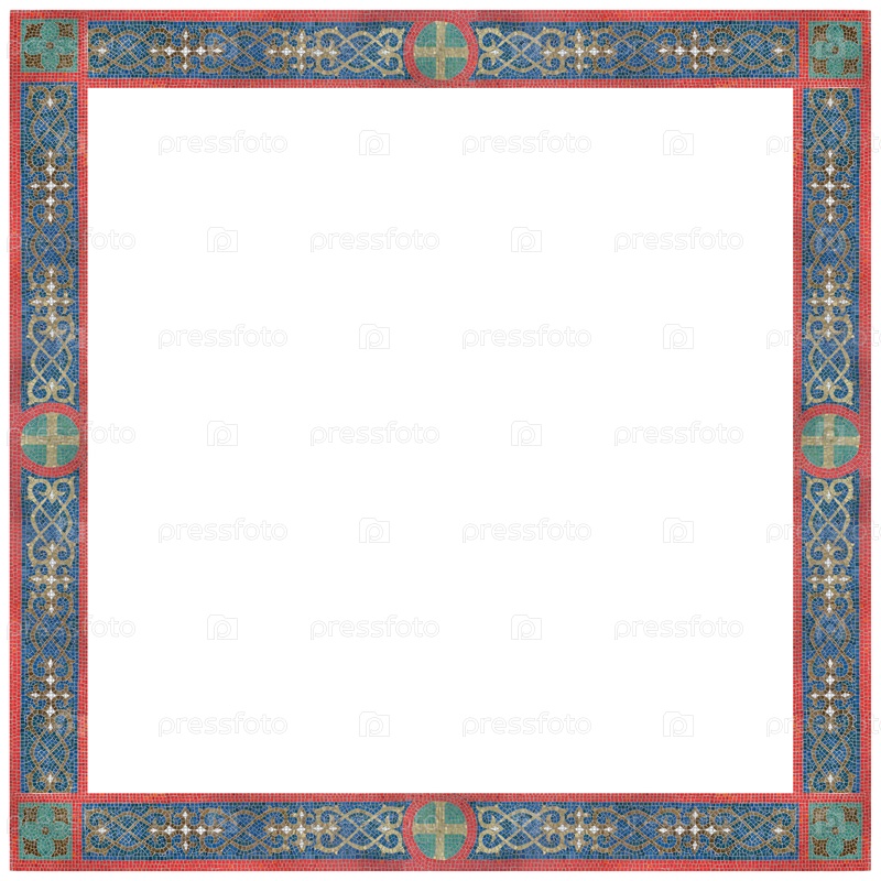 Мозаичная рама с православным крестом изолирована на белом фоне