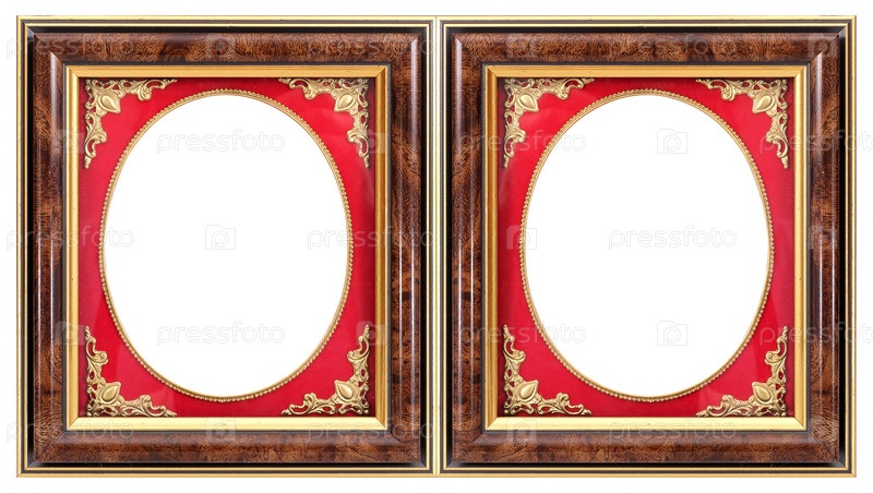Двойная деревянная рама (диптих) для картин, зеркал или фотографий, изолированных на белом фоне