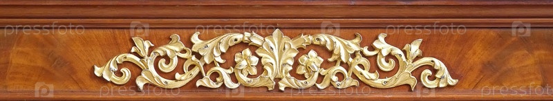 Деревянная плита с золотым цветочным орнаментом изолирована на белом фоне