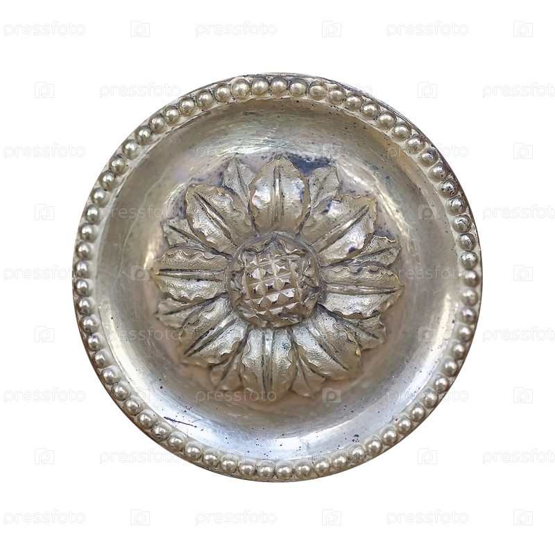 Серебряный декоративный элемент в виде цветка изолирован на белом фоне