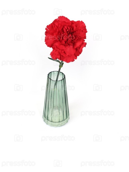 Один цветок красной гвоздики в стеклянной вазе изолирован на белом фоне
