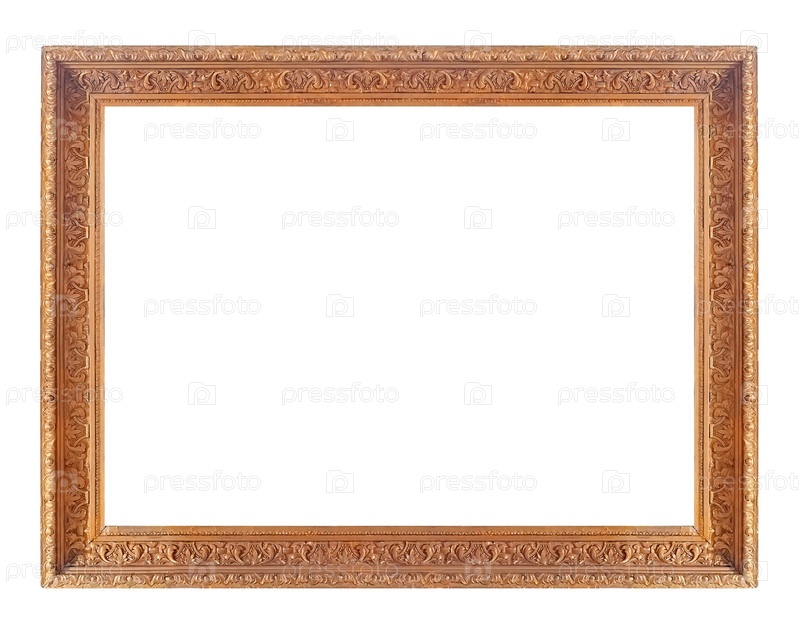Золотая рама для картин, зеркал или фотографий, изолированных на белом фоне