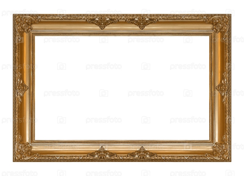 Золотая рама для картин, зеркал или фотографий, изолированных на белом фоне