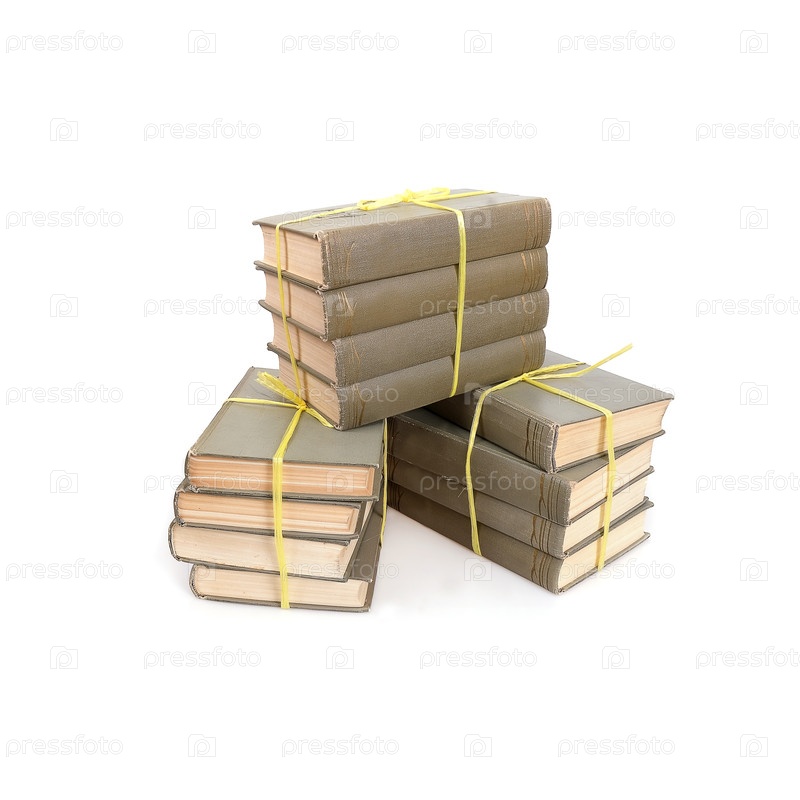 Куча книг в цветных обложках с белыми листами, изолированными на белом фоне