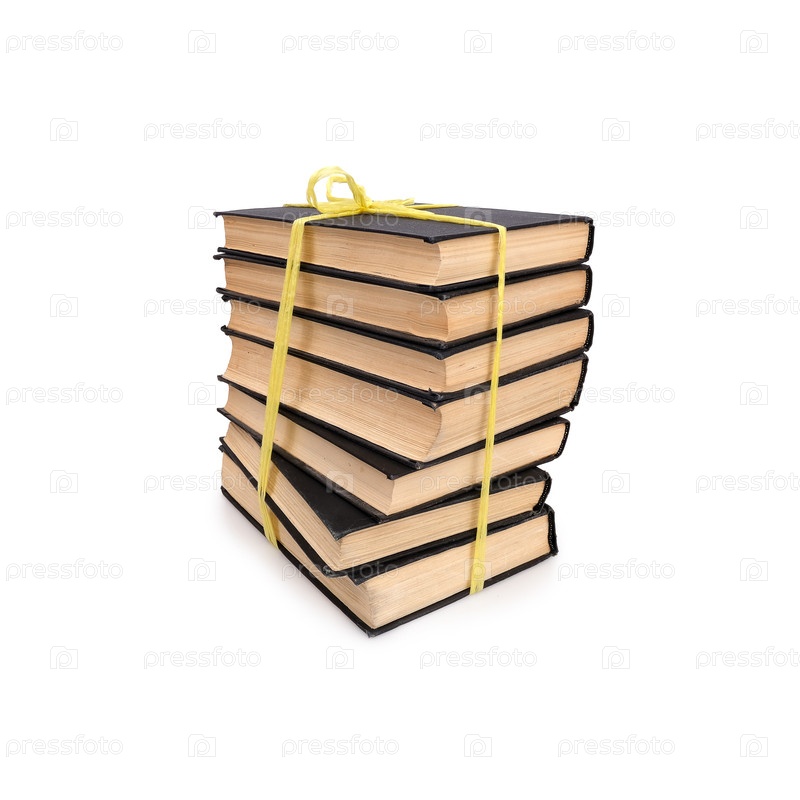 Куча книг в черных обложках с белыми листами, изолированными на белом фоне