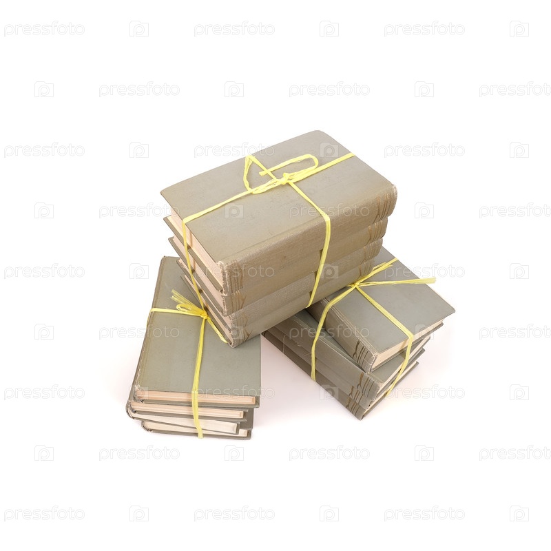 Куча книг в цветных обложках с белыми листами, изолированными на белом фоне