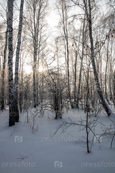 Березы, покрытые снегом в сибирском лесу