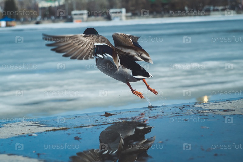 утка в прыжке с воды