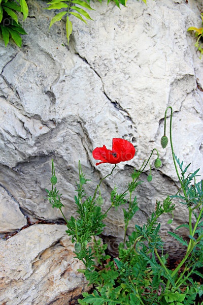 Красный мак на скале в Крыму