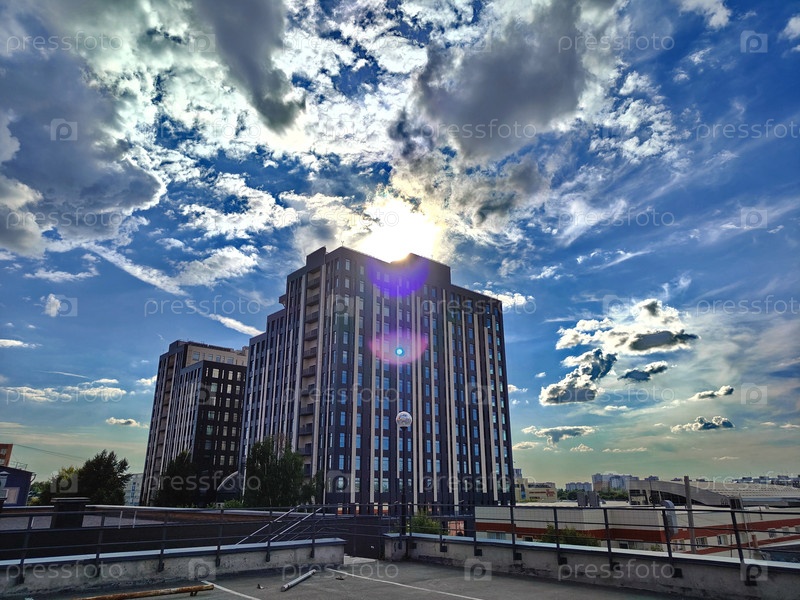 Офисное здание на фоне солнца и неба