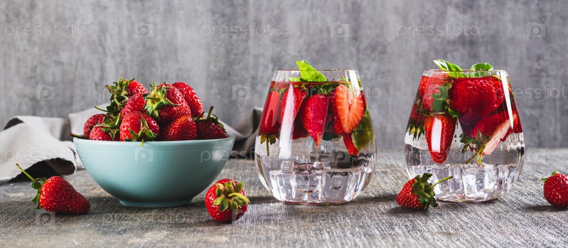 Летняя детоксикация со клубникой и базиликом в бокалах на столе WEB баннер