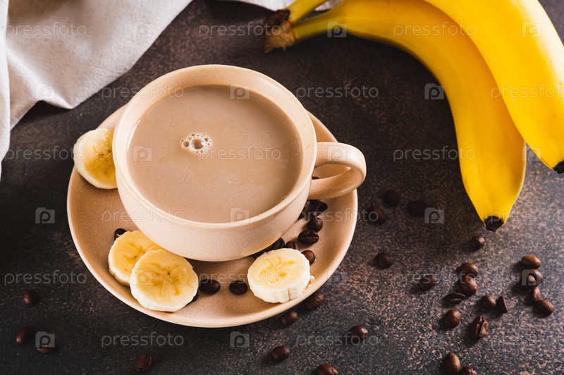 Смешанный мороженый банановый кофе в чашке на столе