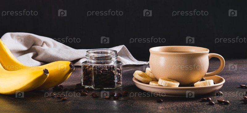 Смешанный мороженый банановый кофе в чашке на столе веб-баннер