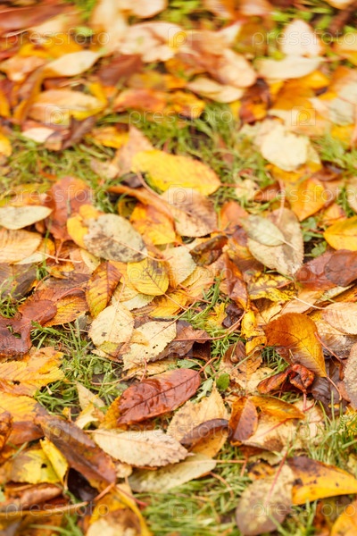 Осенние листья на земле для фона