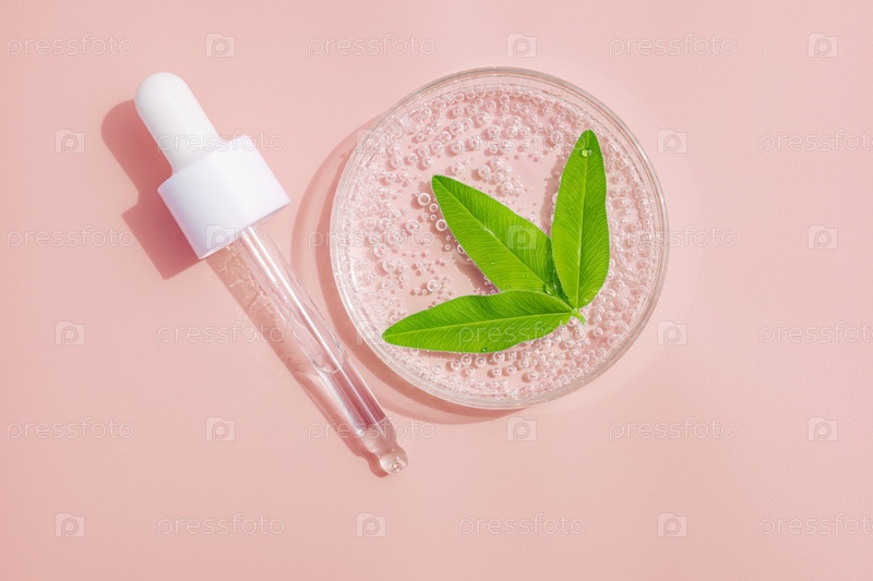 Модель стекла для брендинга. Косметическая пипетка. Модный розовый фон. Концепция органической и косметической красоты. Сильное солнечное излучение. Острый