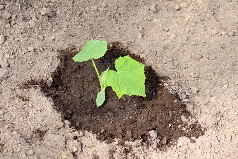 Молодое орошаемое огурцовое растение в теплице в солнечный летний день