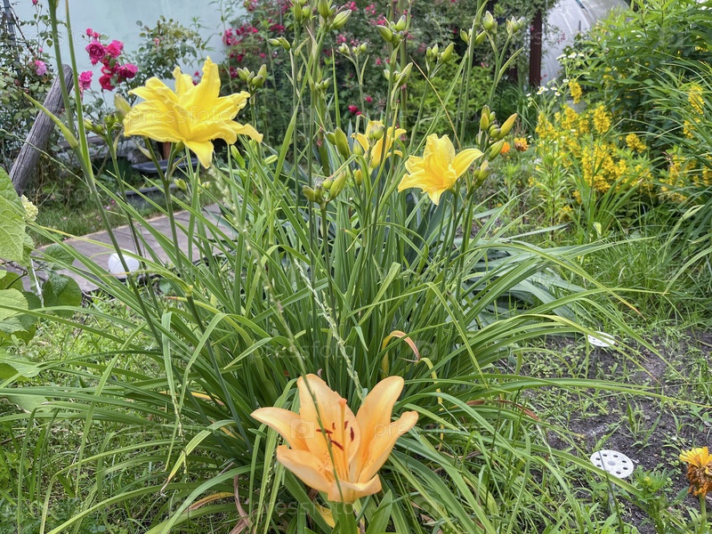 Летом в саду возле дома цветут разнообразные цветки. lilyniki