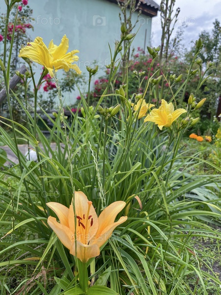 Летом в саду возле дома цветут разнообразные цветки. lilyniki