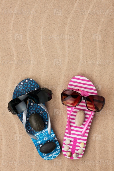 Любящая пара сандалий в песке