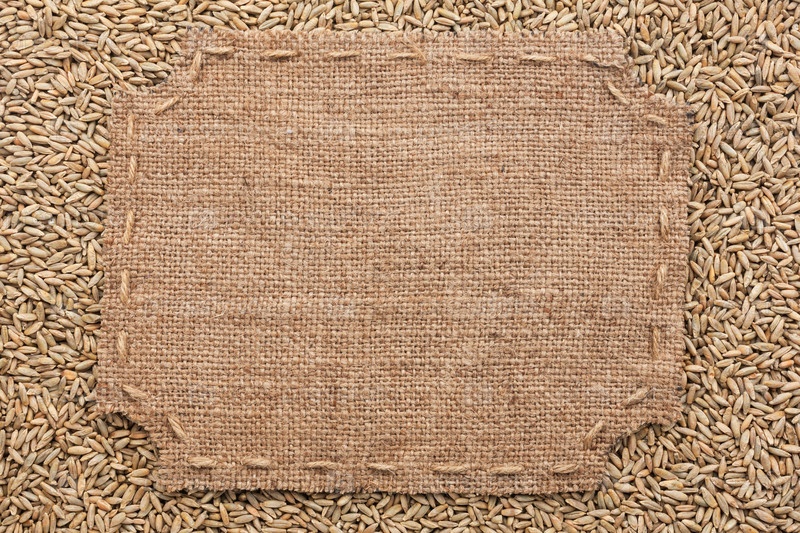 Рамка фигуры с мешком и швами со свободным пространством для вашего текста, лежащего на ржи