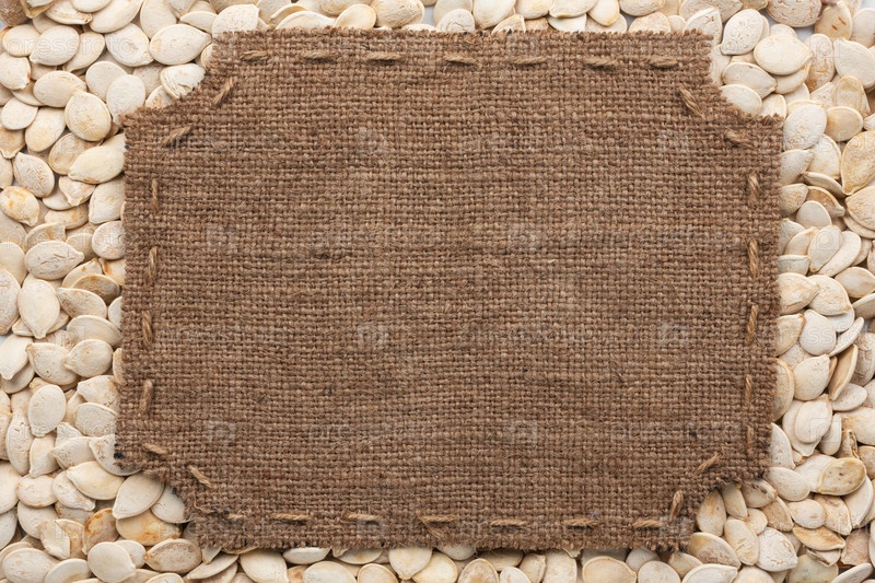 Каркас из мешка с швами и пространство для вашего текста, лежащего на тыквенных семенах