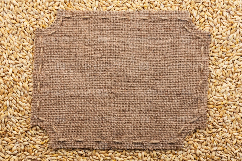 Рамка фигур с мешками и швами со свободным пространством для вашего текста, лежащего на зернах ячменя