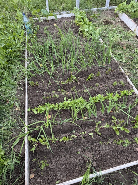Поднятая кровать с разными культурами. сорняки удалены