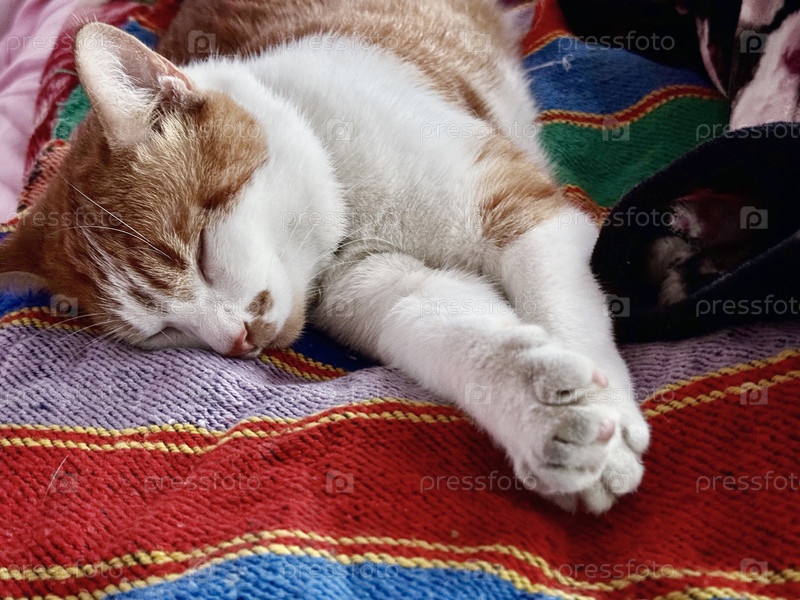 Кошка спит на боку