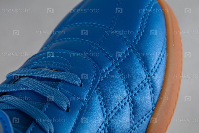 Часть голубой кожаной кружевной кроссовки, сделанная крупным планом