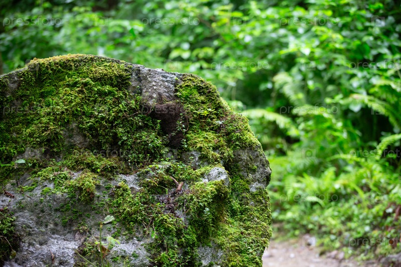 Большая скала, покрытая мхом в тропическом коимате