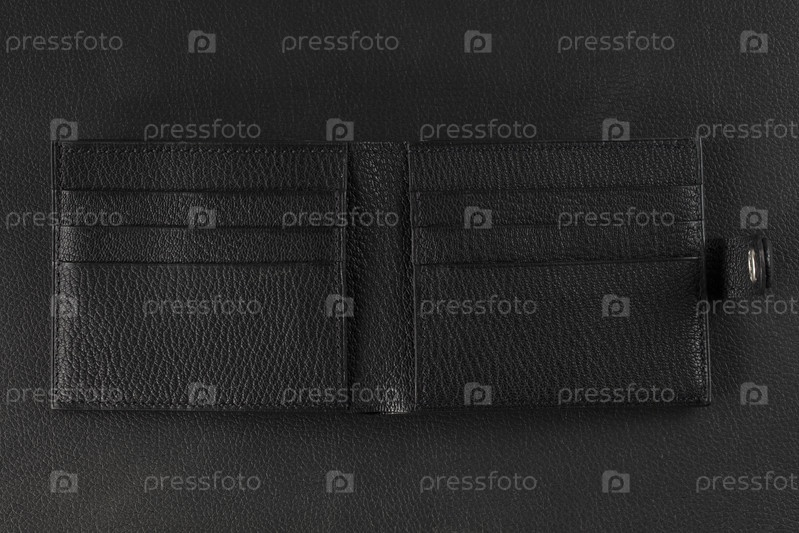 Черный кожаный кошелек держатель визитных карточек на черном фоне
