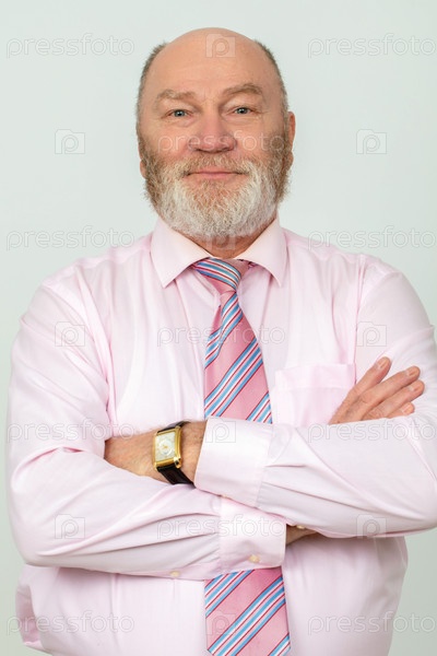 Серьезные дела зрелого старого бизнесмена, генерального директора, босса и учителя в очках, смотрящего на камеру, изолированную на белом фоне