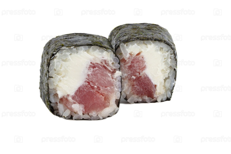 Суши с водорослями нори, рисом тунца и сыром из Филадельфии
