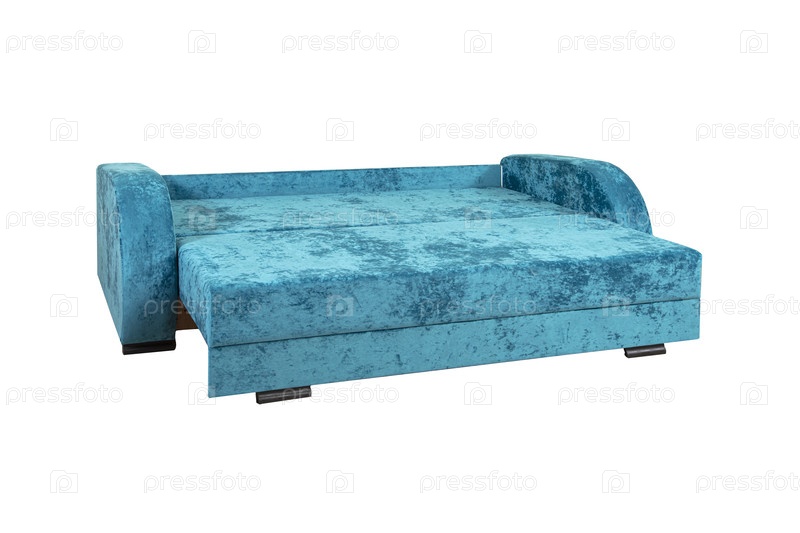 Туркуазный развернутый диван из волоконной ткани, изолированный на белом фоне
