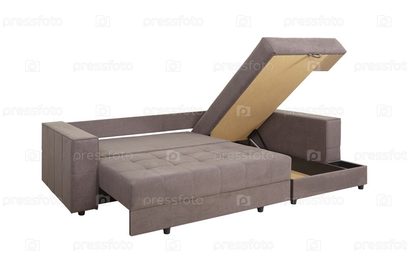 Грей развернул диван с подушками из бархатной ткани, изолированными на белом фоне