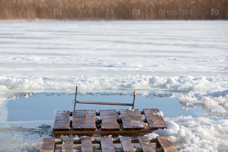 Там есть ледяная дыра для моржей, чтобы они могли купаться в ледяной воде.Зимняя Богоявление на православное празднование Богоявления