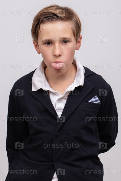Подросток, старшеклассник рисует гримы и показывает язык