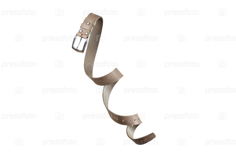 Бежевый кожаный пояс скручен и изолирован на белом фоне