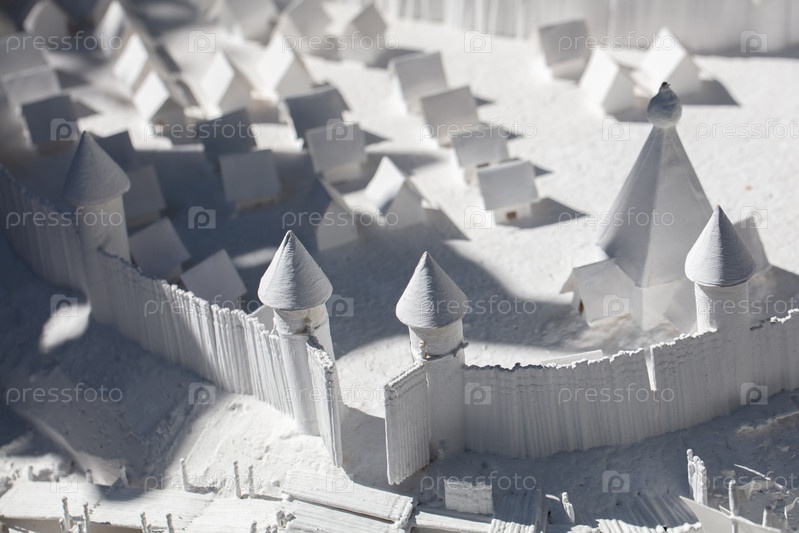 Белая модель древнего средневекового города Архитектурный проект