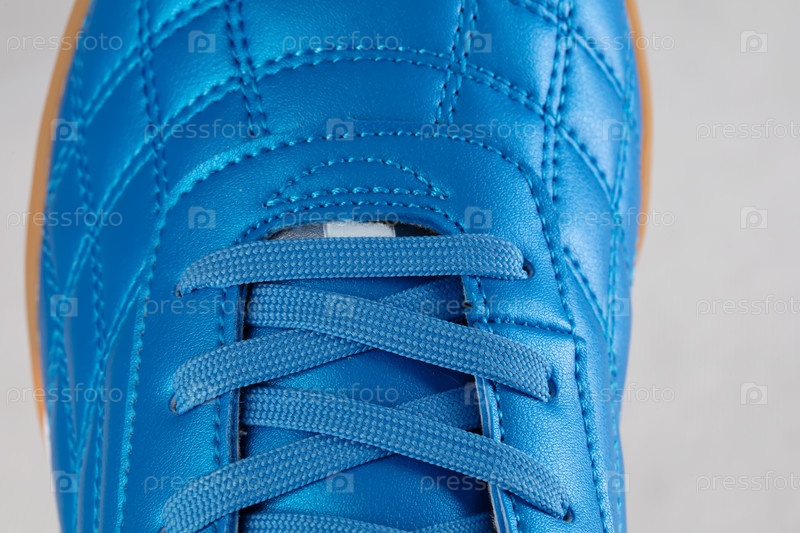 Часть голубой кожаной кружевной кроссовки, сделанная крупным планом